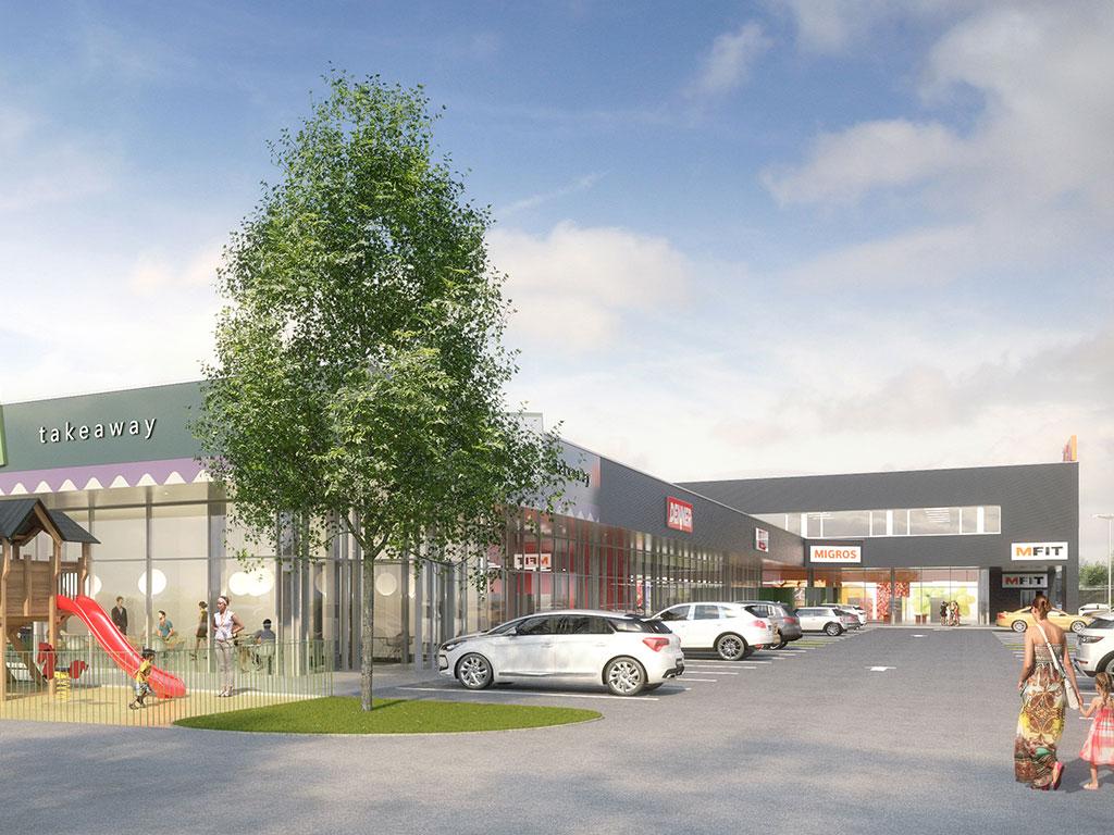 Fernwärme-Übergabestation 410 kW, Gruppenaufbau für Gruppen M-Fitness, SportXX, Denner, Chickeria, Lüftung und TABS (thermoaktives Bauteilsystem, ortverlegt),